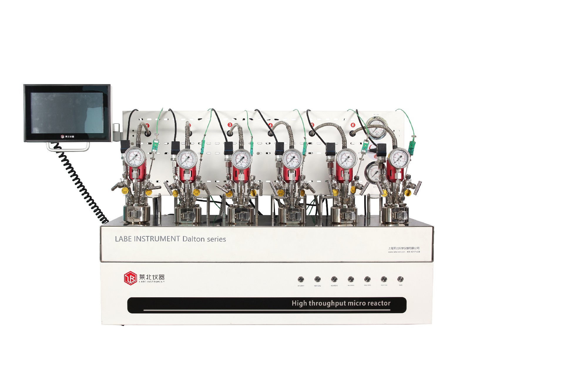 DALTON 6 機械攪拌平行反應釜 可同時進行多組實驗,每組可分別控溫,獨立顯示壓力